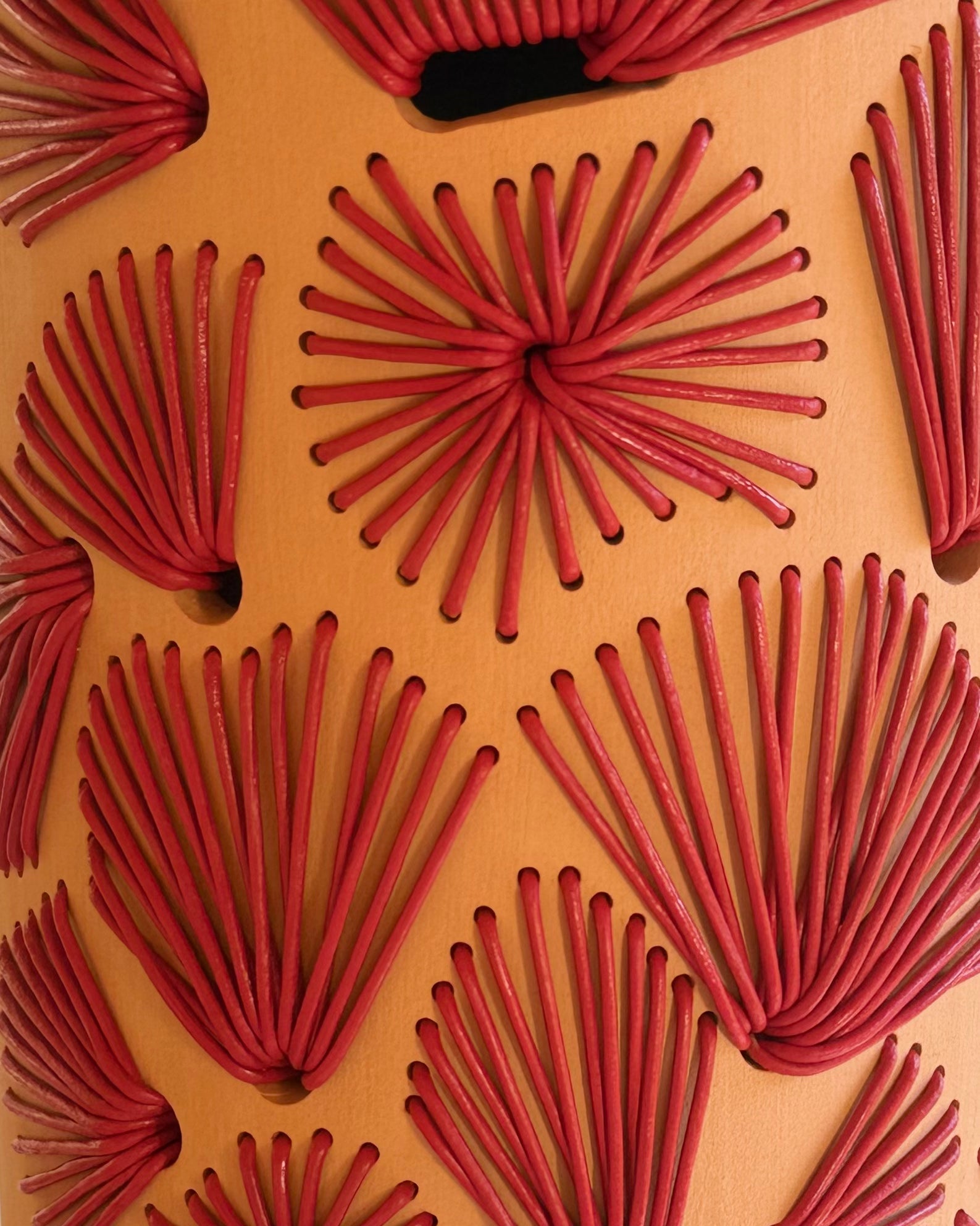 • Matière : Grès Ocre - Cuir rouge